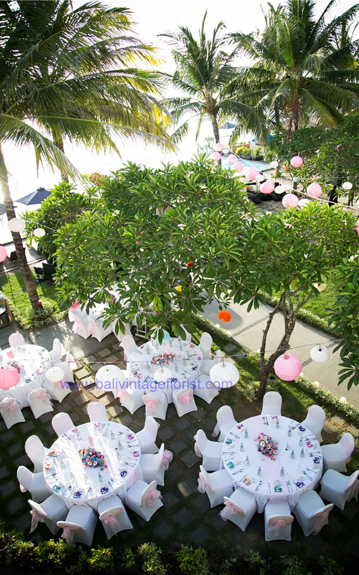 Untuk dekorasi menikah di Klapa bisa dengan beberapa pilihan dan sangat tergantung dengan budget yang di sediakan. Paket standard bisa dengan standing flower, pergola, flower aisle, standing board. Mengenai jumlah masing-masing item bisa di sesuaikan dengan jumlah undangan, paket standard untuk kursinya bisa pilih kursi banquet. Untuk detail paket dekorasi di Klapa bisa contact bagian sales Bali Vintage Florist