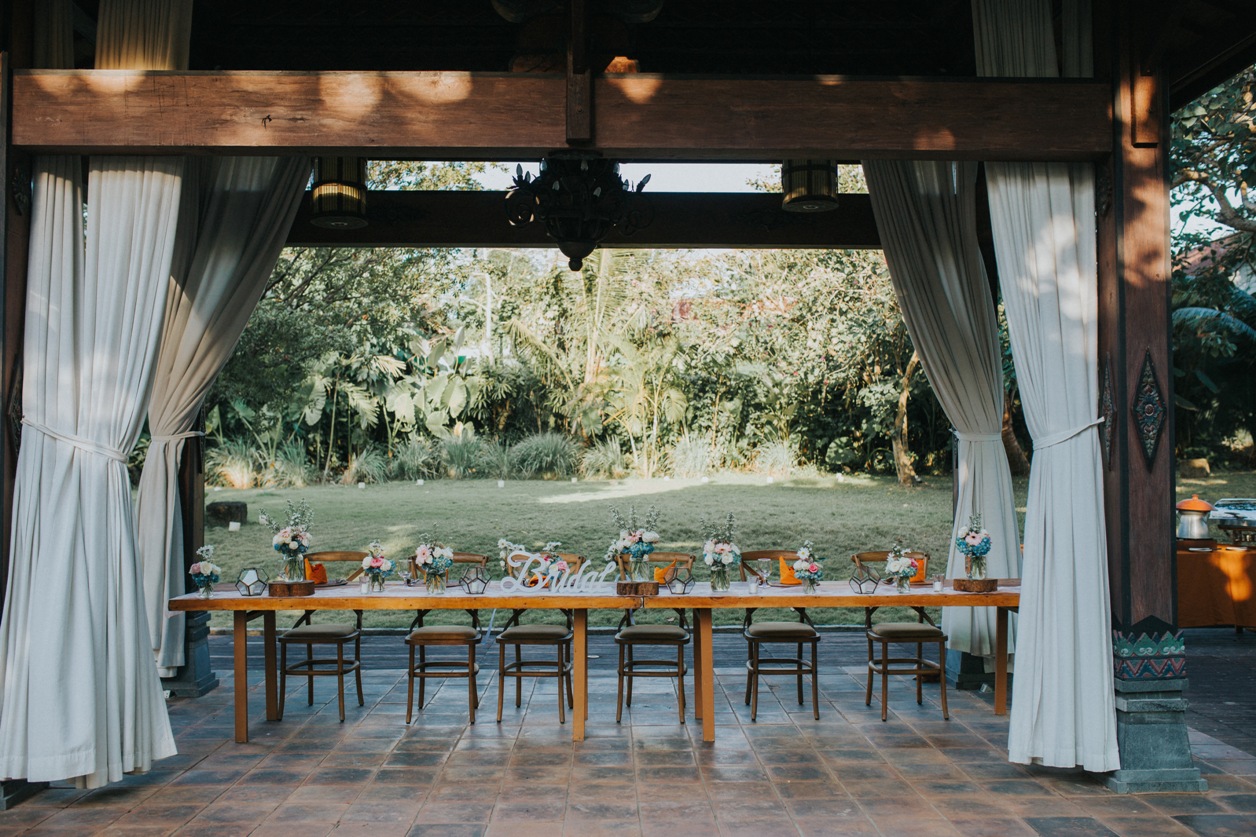 Looking for bali florist at Plataran Canggu?. Plataran Canggu is not a beachfront wedding venue but  a forest venue-concept. For those who seek a venue close to nature concept, greenery concept, or forest wedding venue concept. Plataran Canggu is recommeded. Bali Vintage Florist has experience to decorate Plataran. There are bamboo bridge that is great for photo session spot, joglo house with wooden deck for wedding ceremony, and grass lounge located bellow the jungle that is best place for cocktail.