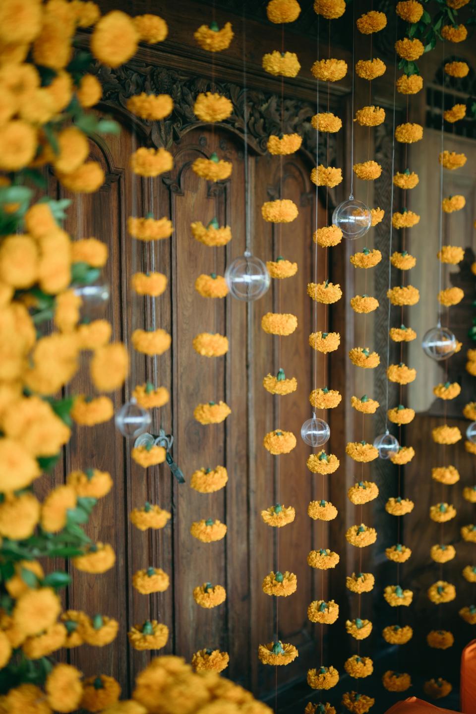 - Unique Feature: Marigold curtains softly hanging in the pre-wedding mandap area or lounge created a truly Instagrammable and photogenic backdrop.