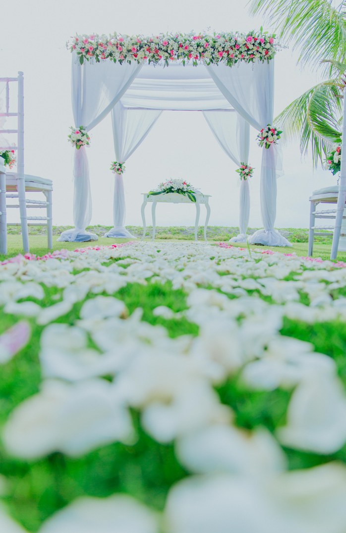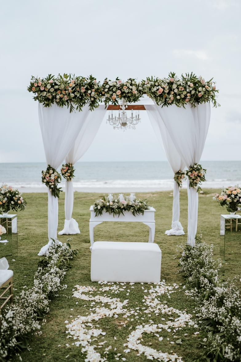One of the popular decorations as a place is called Pergola. Pergola is a structure decorations style using 4 poles. The poles can be wooden or bamboo poles. The decoration can be simple or full of flower, it depends on your budget. The pergola also can be decorated with some fabricant chiffon. Other detail can be added such as hanging chandelier, hanging fairy light or any other decorative light. The color of the chiffon can be adjusted according to the theme color preferred .