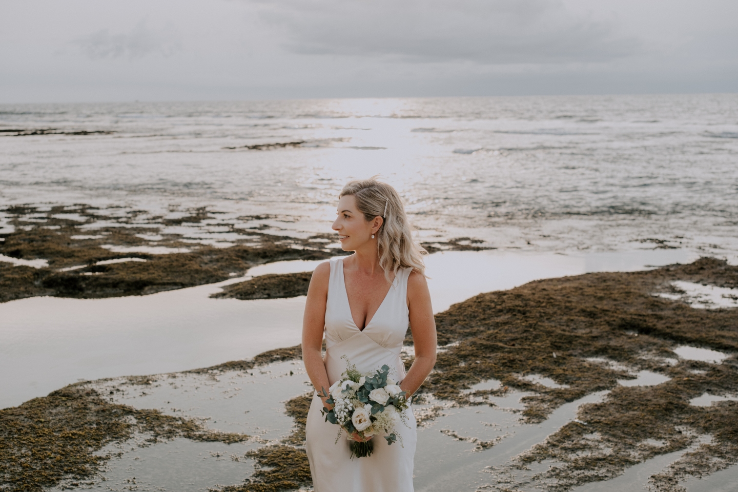 Picture yourself standing on the edge of a cliff, with the ocean stretching out beneath you as you exchange your sacred vows. The gentle sea breeze and the distant lapping of the waves provide the perfect backdrop, as do the blue skies of Bali. Now, add one magical element: white roses.