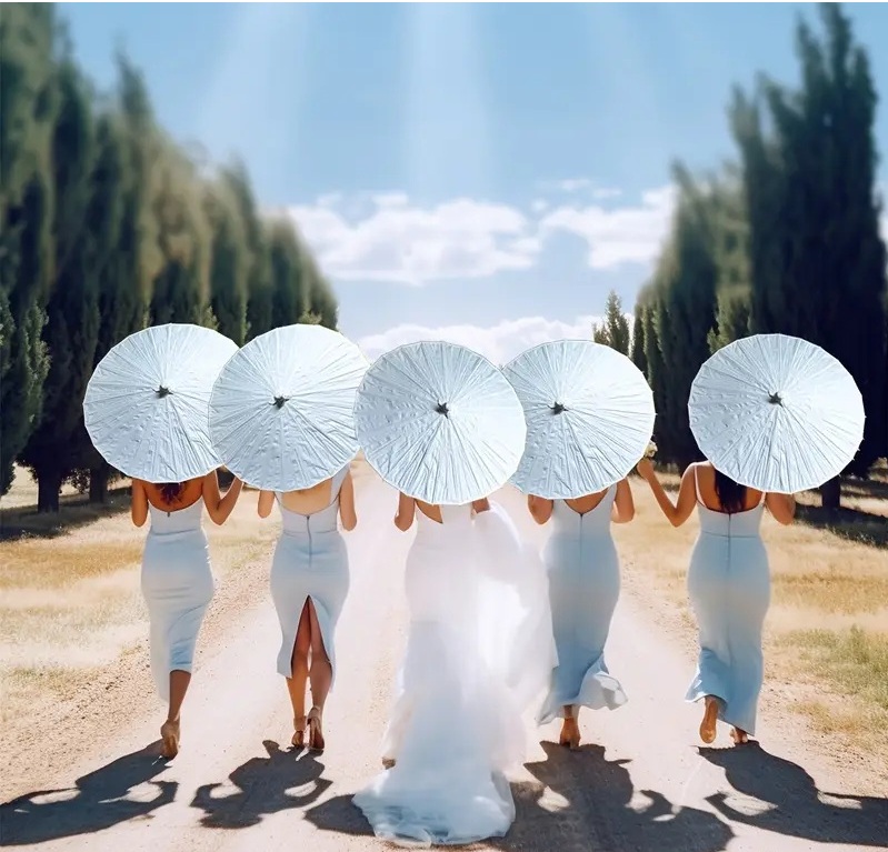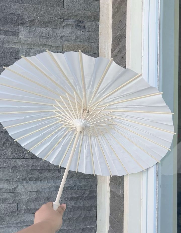 White paper umbrella with 60 cm of diameter  and wooden stick, is a great umbrella  used during photo session and also day wedding , it is possible  to protect you from sun pierce and look  photogenic. Price is quoted per pcs and exclude delivery fee