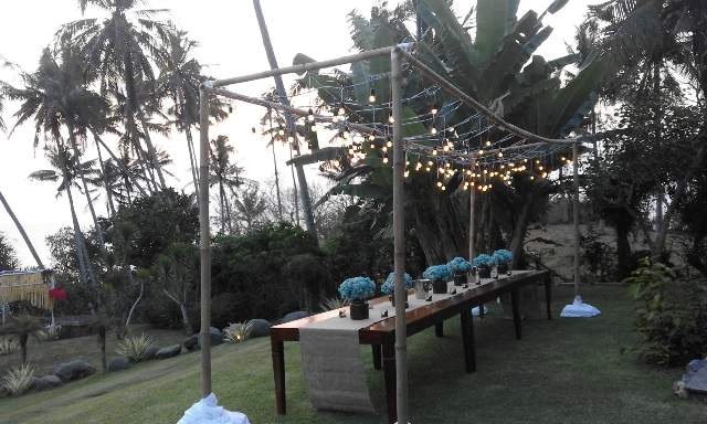 Hanging bulb or in Indonesia called Bohlam can be an option for your ambient light of your dinner party. Hanging Bulb can be set with a structure, rigging. It depends on how wide and how is the circumtances of your party area. The hanging bulb can be provided with free set up for minimum of 200 pcs booking for area within Nusa Dua, Sanur, Denpasar, and Jimbaran. Less than 200 pcs is subject to transportation and set up fee. The set up fee depends on your location.