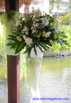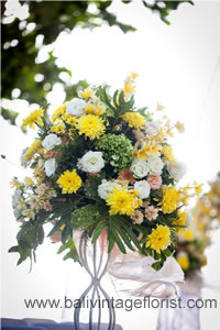 Standing flower with white iron stand can be multipurpose decoration, it can be as an entrance to venue, flower along the isle and event or for hampers as well. The arrangement is composed by local flower. We also provide a custom decoration for the same style using different flower at customize cost.