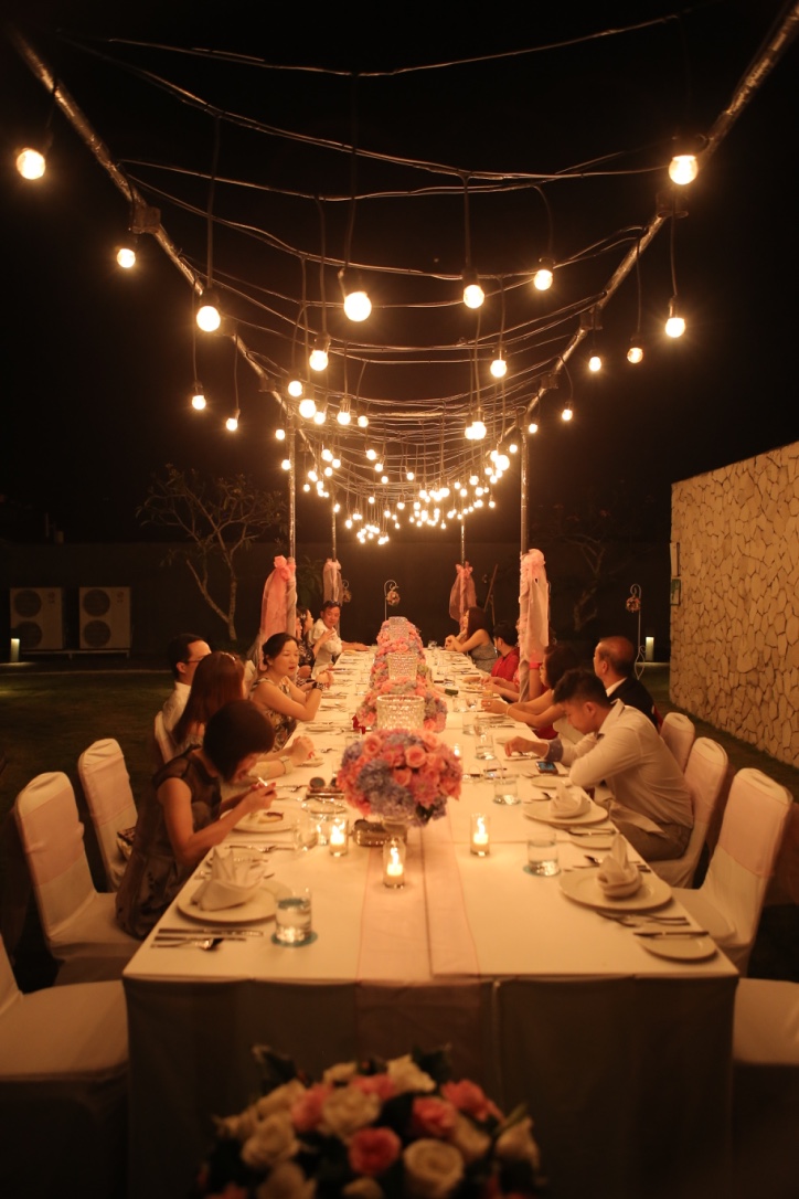 Le Meridien is located in Jimabran bay, provides you a rooftop wedding chapel with ocean view. In the photos, wedding decoration in the chapel was provided by Le Meridien. We are Bali Vintage Florist happy to assist your flower arrangement for wedding decoration, dinner reception, ambient lighting, initial letter, photo booth, and other decoration you may need.