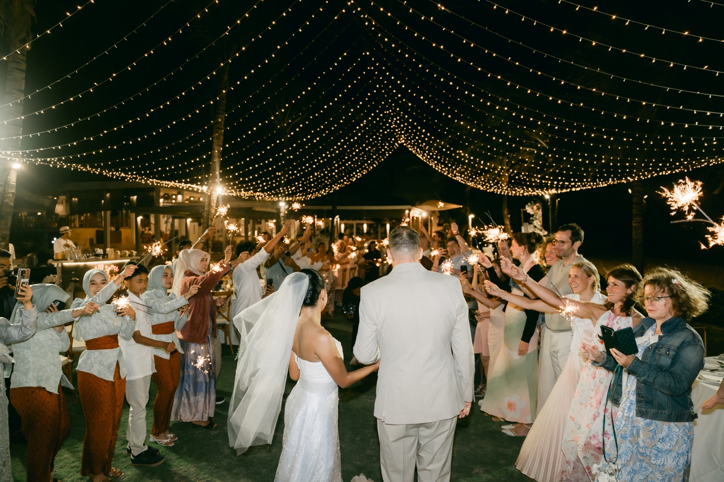 Wedding sparklers in Bali, or wire fireworks, are not your average fireworks. Their long, thin wands burn slowly, creating a mesmerizing shower of golden sparks. Unlike traditional fireworks, they are low-smoke and burn cleanly, making them a safe and elegant choice for any wedding venue, whether indoors or outdoors.