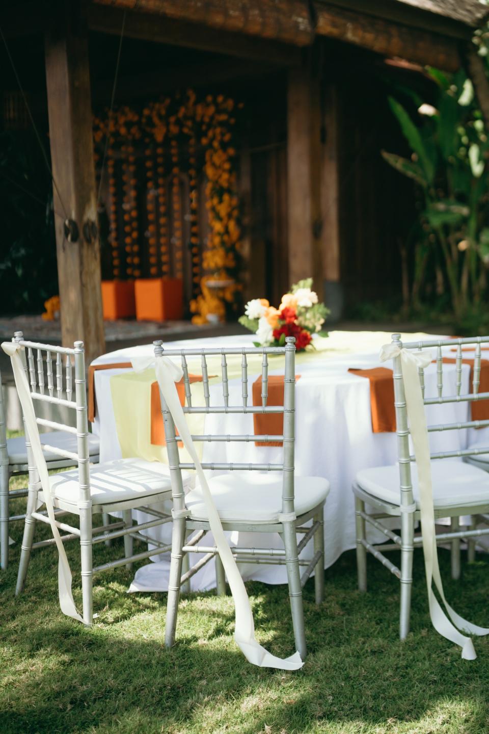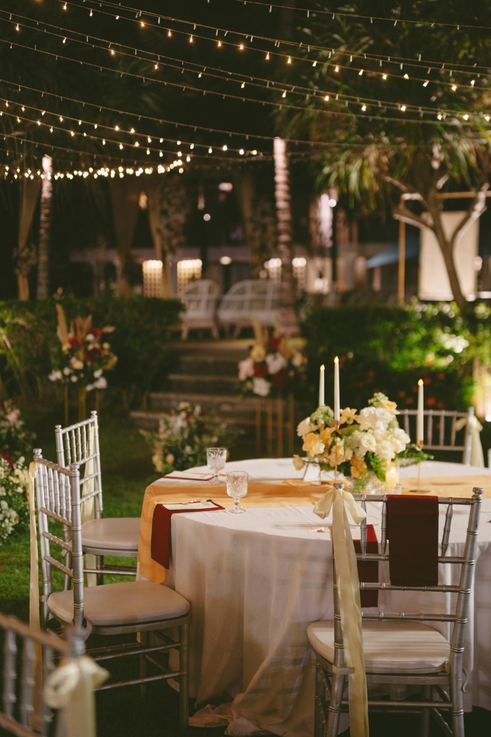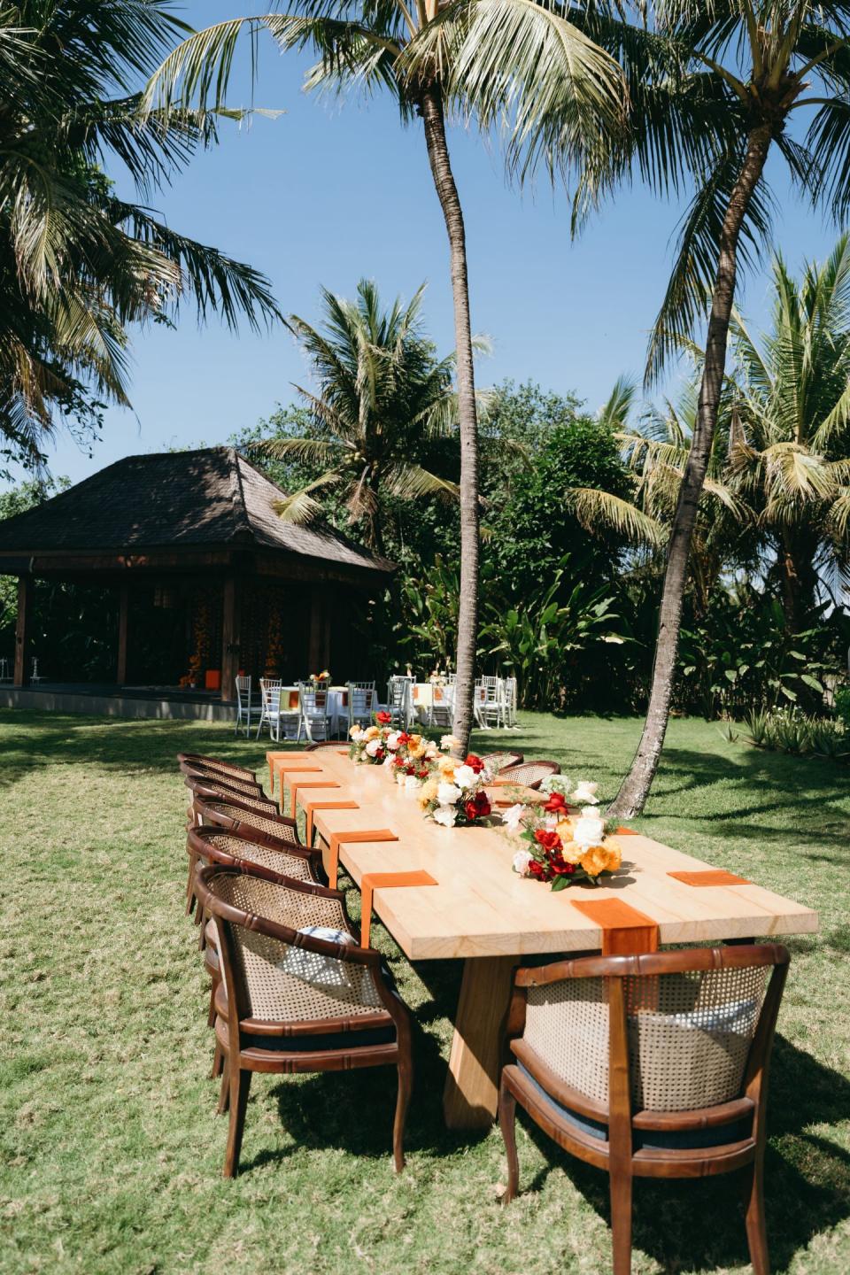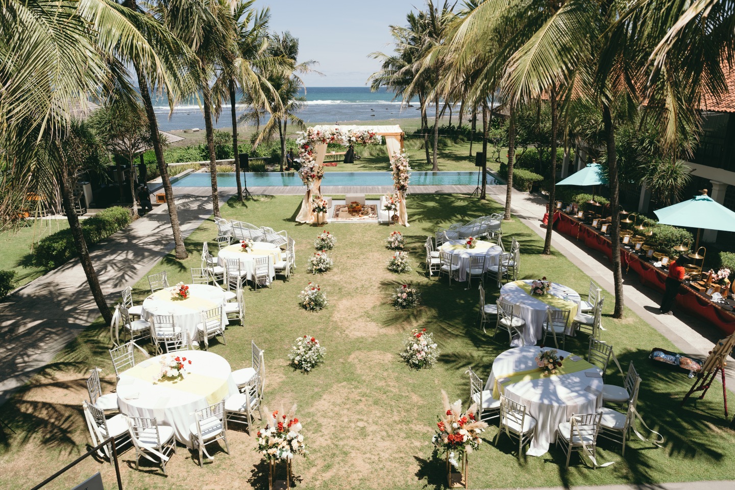 For the main wedding ceremony, the atmosphere transitioned to be more elegant and profound, while still retaining elements of Balinese luxury.