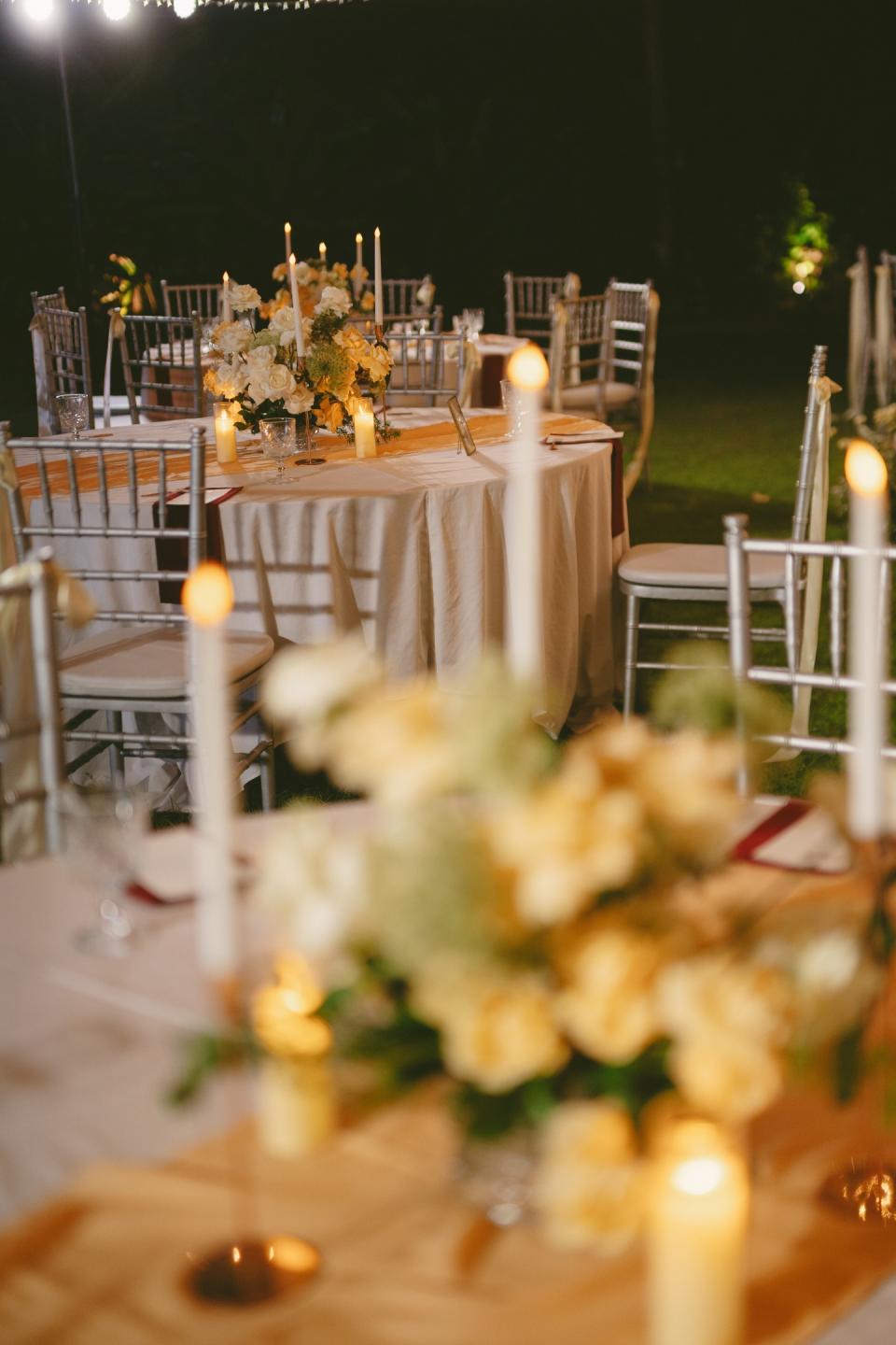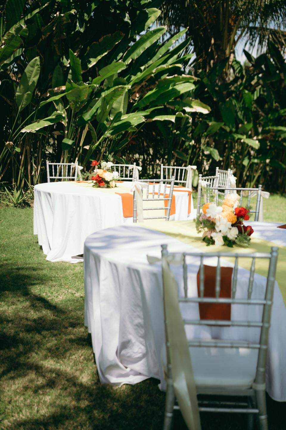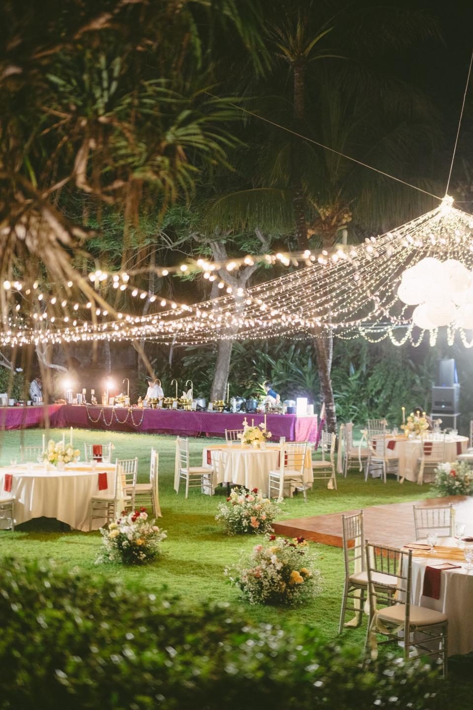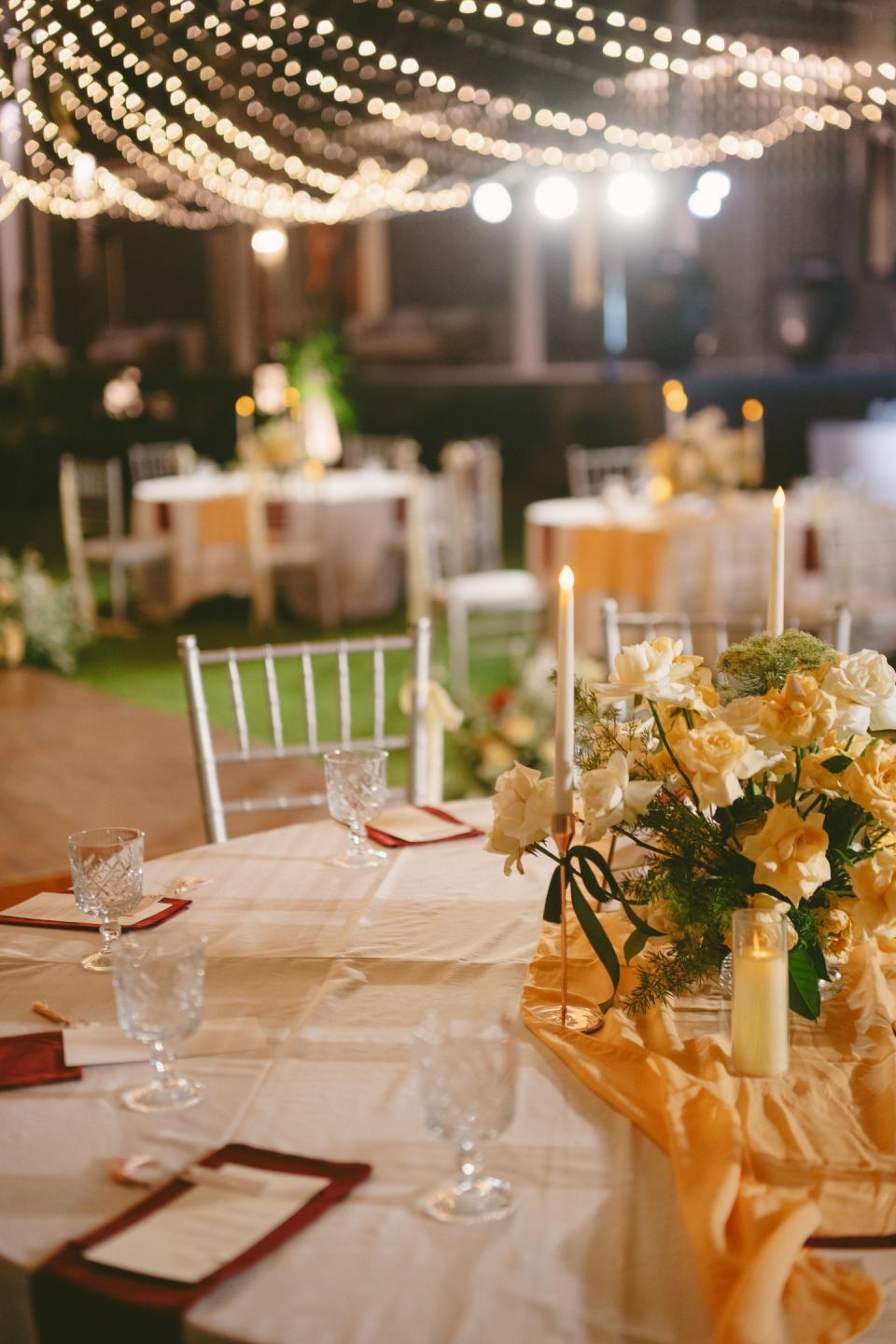 For the main wedding ceremony, the atmosphere transitioned to be more elegant and profound, while still retaining elements of Balinese luxury.
