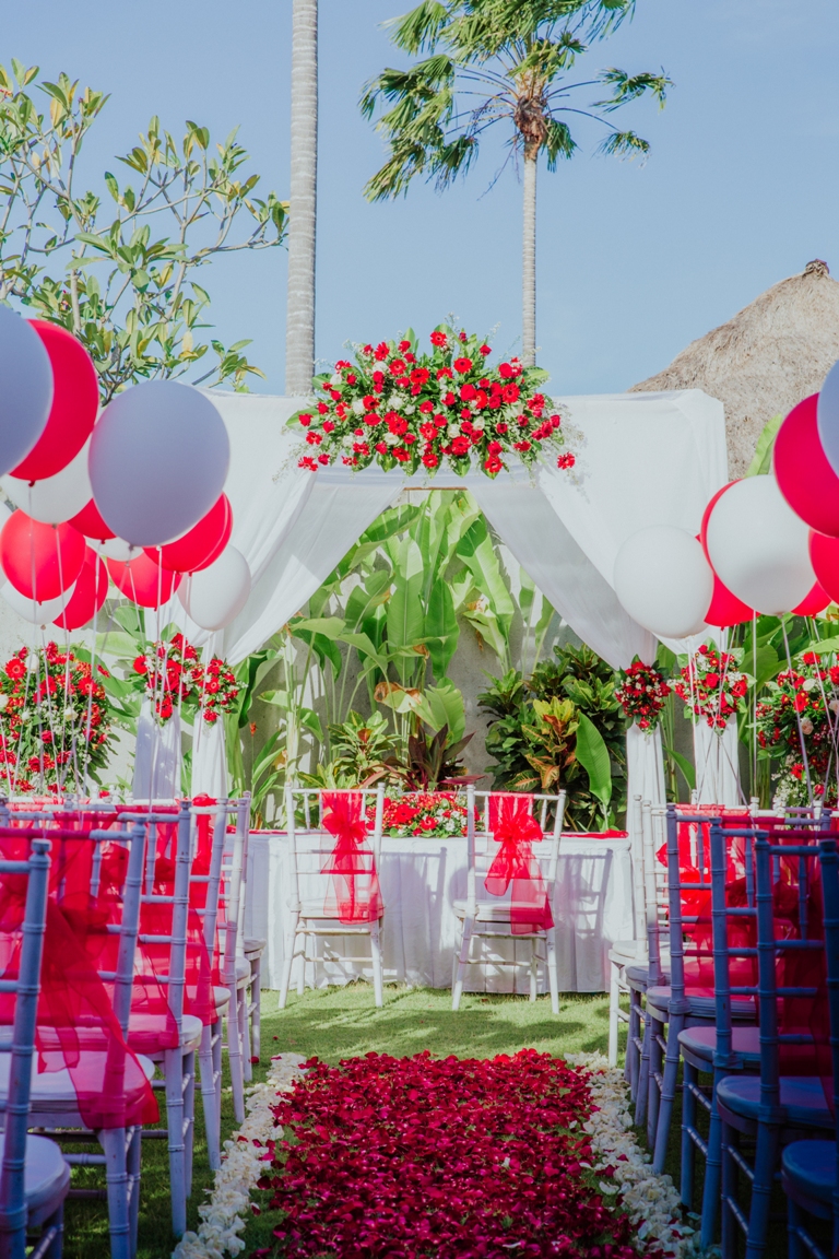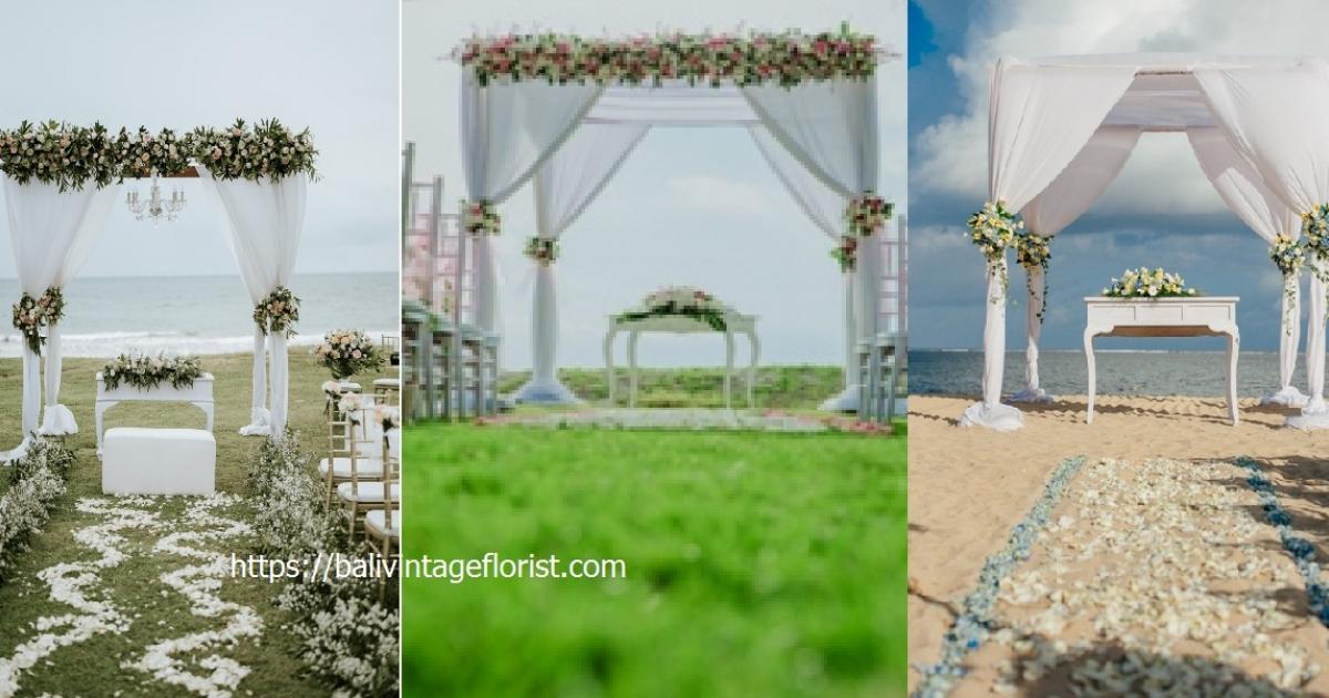 One of the popular decorations as a place is called Pergola. Pergola is a structure decorations style using 4 poles. The poles can be wooden or bamboo poles. The decoration can be simple or full of flower, it depends on your budget. The pergola also can be decorated with some fabricant chiffon. Other detail can be added such as hanging chandelier, hanging fairy light or any other decorative light. The color of the chiffon can be adjusted according to the theme color preferred .
