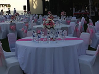 We are ready to decorate your venue either for ceremony only, or ceremony and reception. We can create your flower centerpiece for guest table, flower centerpiece for bridal table, entrance gate to your wedding venue, and also photo booth decoration.