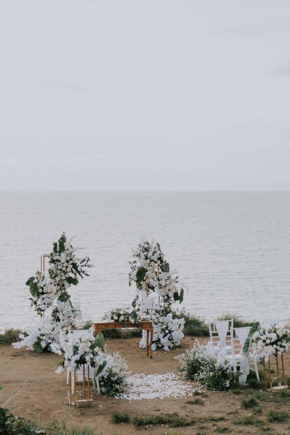 Renowned as one of the best spots in Bali for cliff-top weddings, Balangan Cliff Top offers privacy, expansive ocean views, and a tranquil setting, making it ideal for a meaningful ceremony. White rose decorations will further enhance the sense of sacredness and elegance.