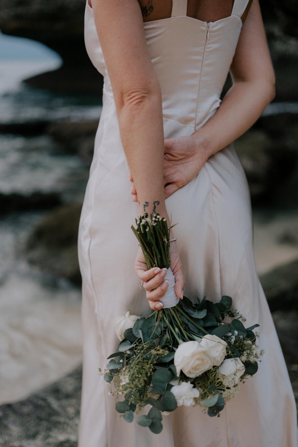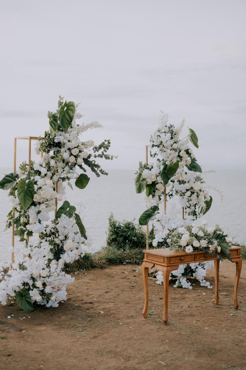 Picture yourself standing on the edge of a cliff, with the ocean stretching out beneath you as you exchange your sacred vows. The gentle sea breeze and the distant lapping of the waves provide the perfect backdrop, as do the blue skies of Bali. Now, add one magical element: white roses.