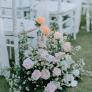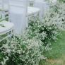 Flower Aisle can be some petal flowers or a long flower arrangement set on the side of the aisle. The type of the flowers that are used depends on the budget and theme color of your wedding. We offer white and green flower arrangement,price quoted per pcs ,one pcs can cover around  60 cm lenght of area . Minimum purchase is required and subject to delivery fee