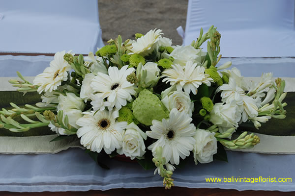 Do you love local flower?. We try to understand further about various local flower which grow in our tropical country. Bali has some place which can grow some local flower called Bedugul and Baturiti. This area located about 800 above sea level, grows many local flower such as Chrisantenum, Gerbera, Marigold. For our Altar Flower 02 composed by Balloon flower, Gerbera, Green leaves and local Rose.