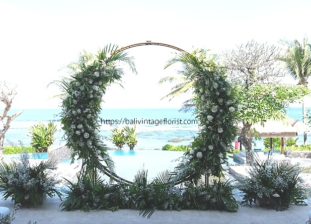 Round Arch Flower with diameter of 120 cm and high 280 cm, composed by Green foliages, White Rose, Peacock, Dendrobium. Price quoted per set consists of one Round Arch and 5 Flower arrangements placed on the ground, exclude delivery and set up fee. Rp 9.100.000Category: Arch FlowerProduct Rating: 0No votes yet