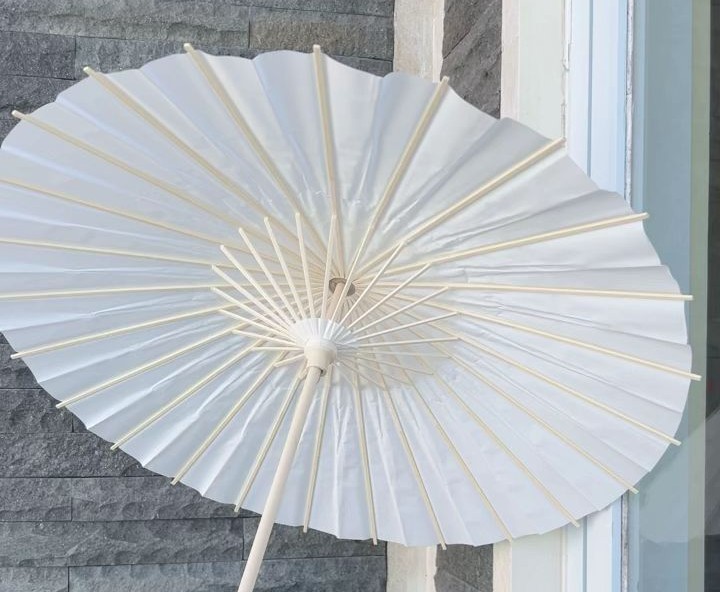 White paper umbrella with 60 cm of diameter and wooden stick, is a great umbrella used during photo session and also day wedding , it is possible to protect you from sun pierce and look photogenic. Price is quoted per pcs and exclude delivery fee