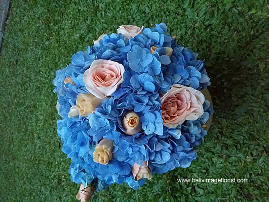 Blue Hydrangea Bali local flower is grown in highland, this flower does not require much water to survive but needs a cool climate. Hydrangea grows in Bedugul area. This flower is used by local Hindu people as one of the ingredients for offerings. Our professional flower design also can create the bouquet using Blue Hydrangea.