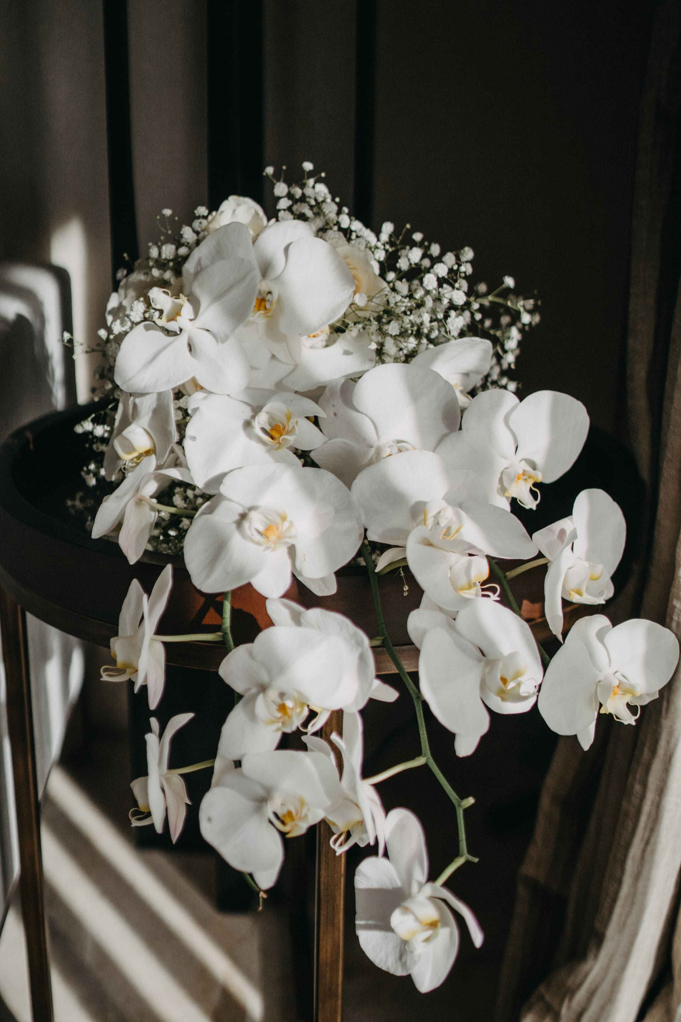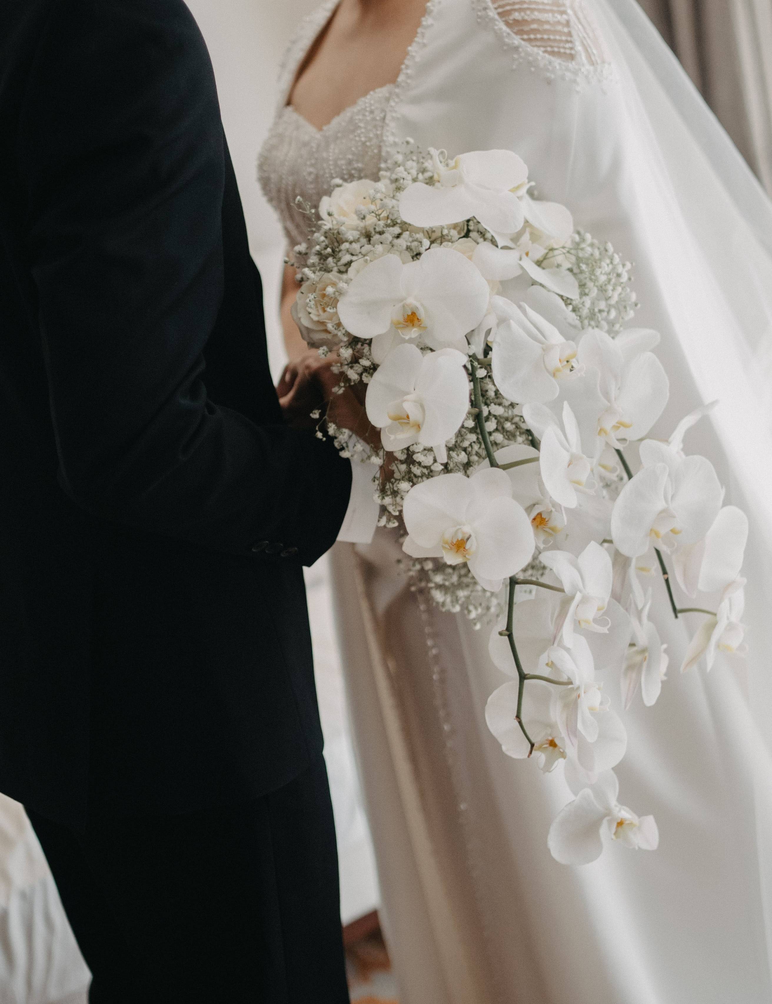 Discover timeless elegance with our exquisite bridal hand bouquets featuring delicate White Moon Orchids and ethereal Baby's Breath. Each meticulously crafted bouquet captures the essence of pure love, adding a touch of sophistication to your special day. Elevate your wedding with the beauty of these blossoms, symbolizing purity and everlasting affection. Explore our collection and let your bridal journey blossom with grace and charm.