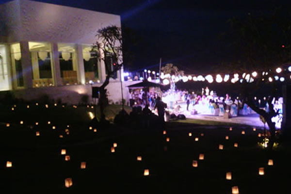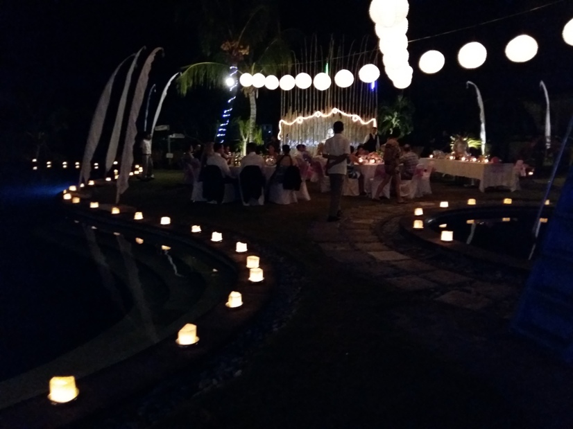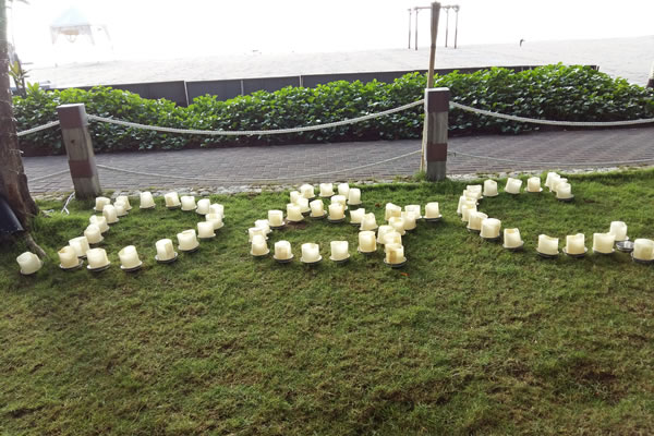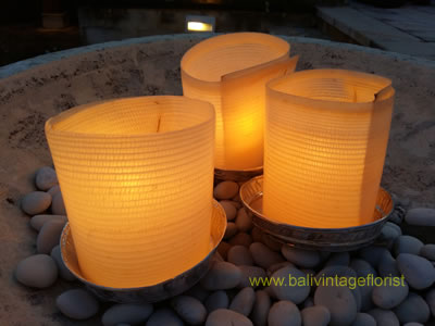 Your dinner venue looks nicer at night with candle light with banana trunk, the candle is set and spread out around your dinner area. The candle can also be spread out on your pool with initial letter of your name. It needs further effort to make it and on additional cost. Minimum order of 200 pcs is free of delivery and set up charge.