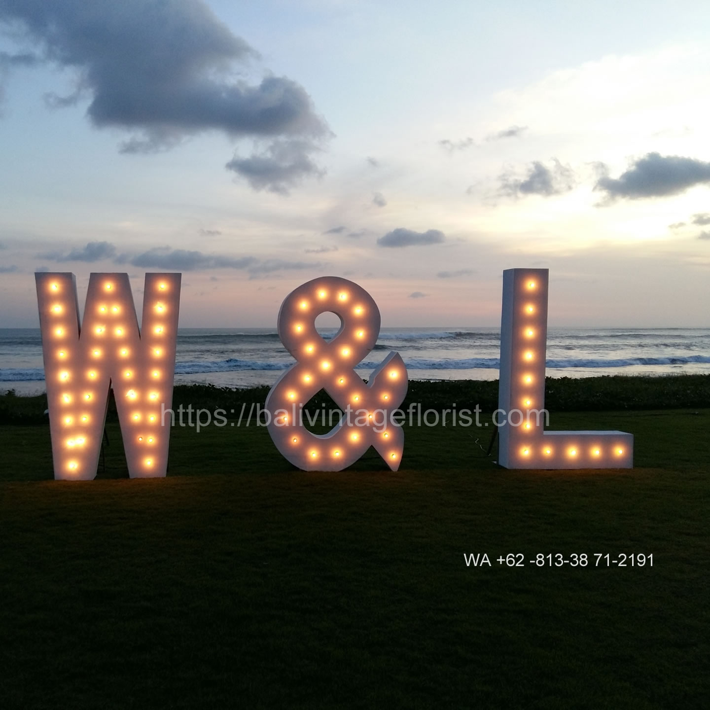 - Initial letter with Light & Letter with the size: H= 175 cm, W = 125 cm with light bulb