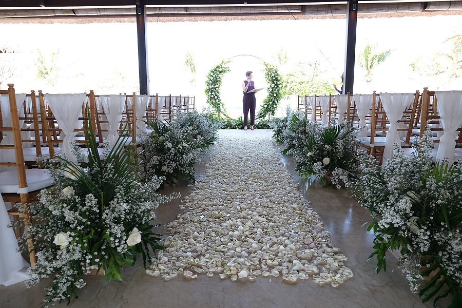 Luxury decoration package for ceremony and dinner reception for maximum 80 guests, all decoration composed by fresh flower include orchid flower and green foliages.
